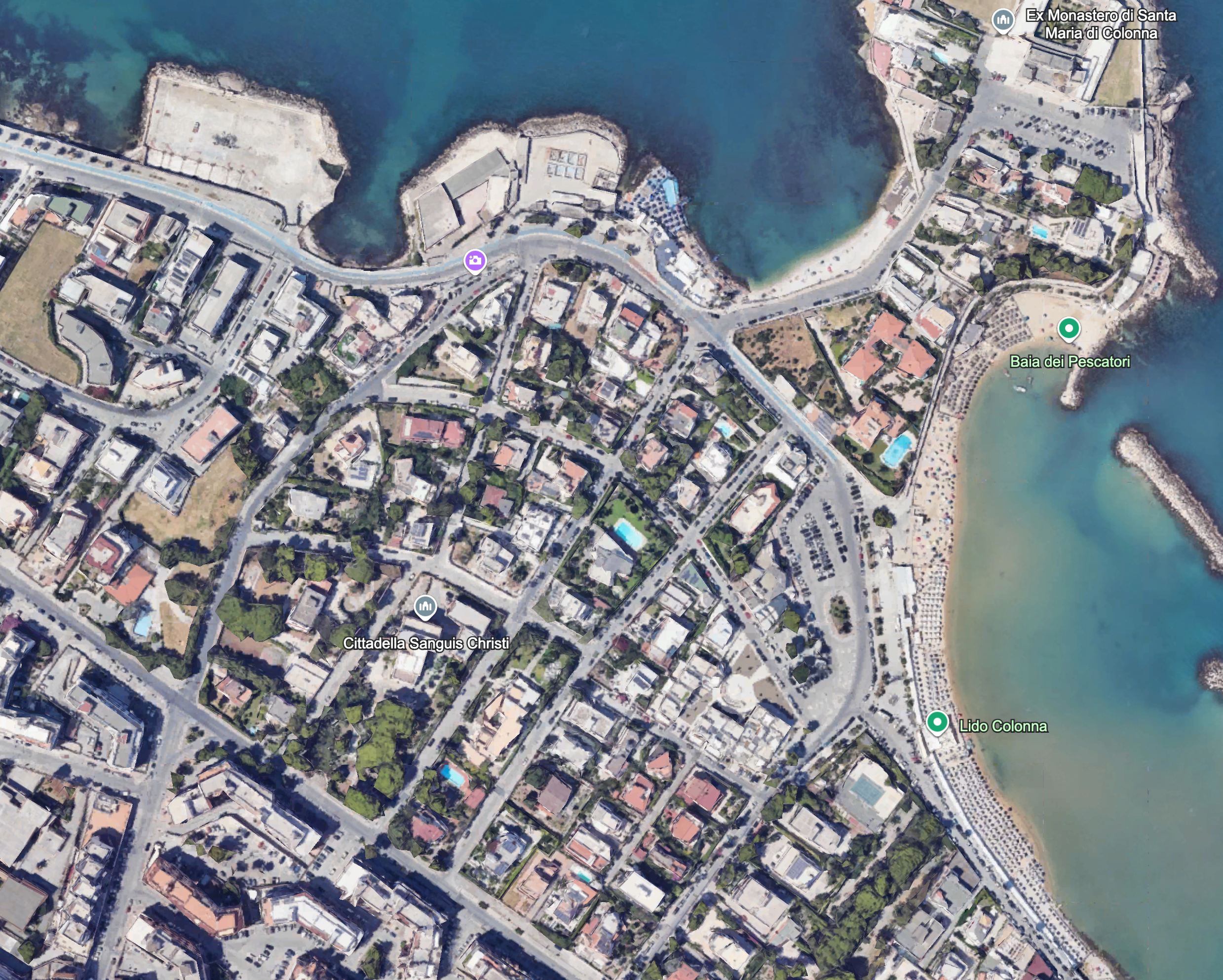 Una prestigiosa villa sita a Trani in zona Colonna a pochi passi dal Lungomare Cristoforo Colombo, in zona servita da scuole, trasporti e esercizi commerciali.